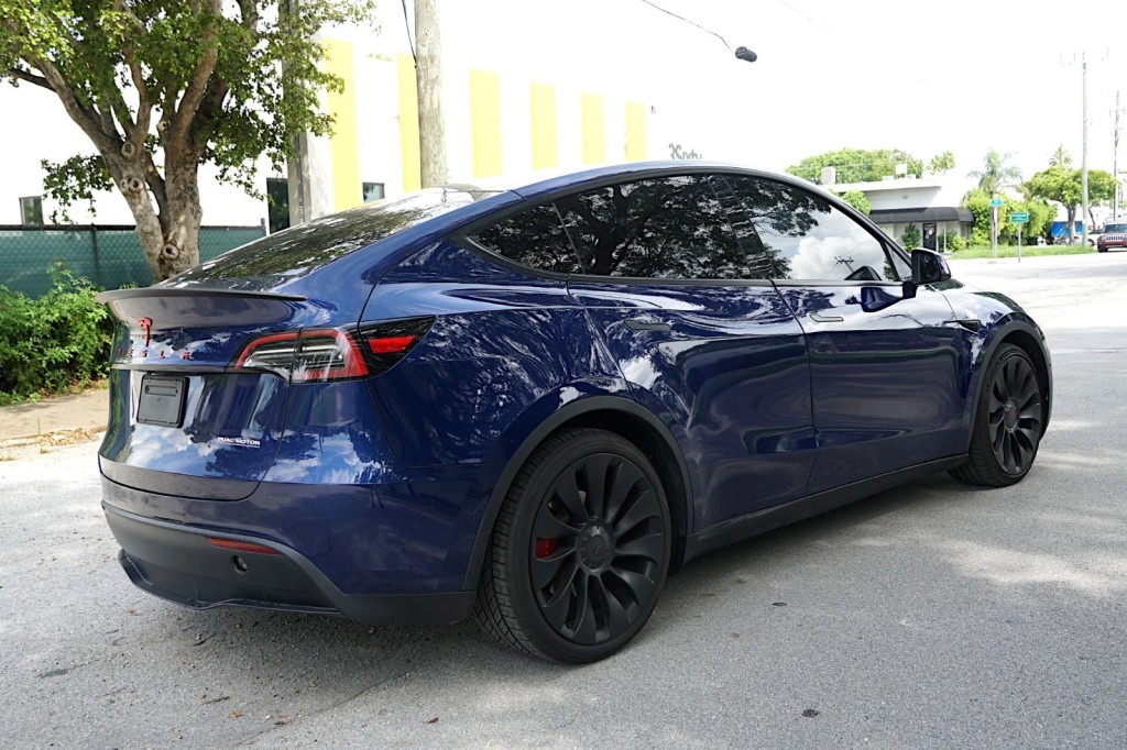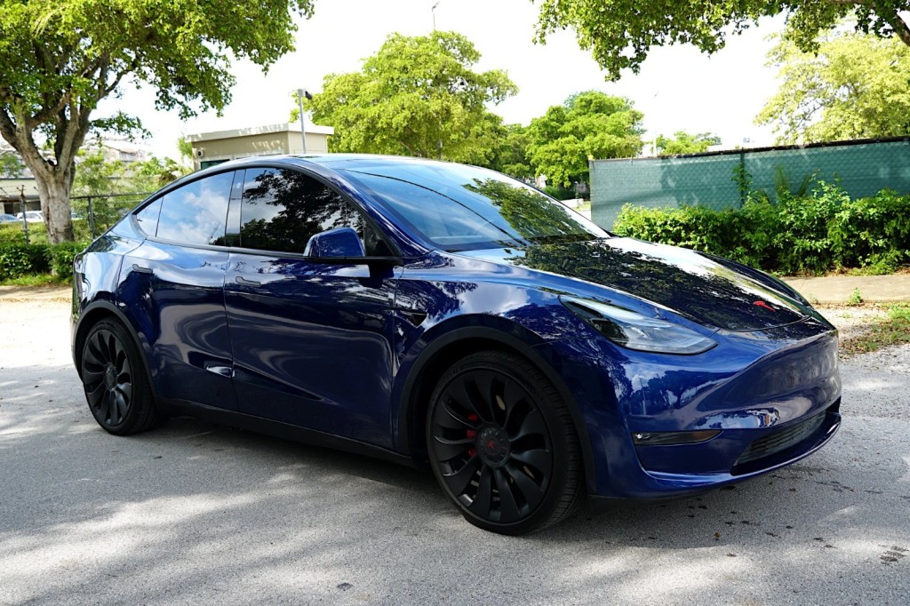 The best of the best. Top of the line 2022 Tesla Model Y Performance AWD with 45,600 miles. This is the 450hp Performance trim, the best and fastest version. Just look at this gorgeous blue over black color combo with blacked out wheels. This Tesla is in excellent condition inside and out, just serviced, no issues whatsoever. I've personally drive this car several hundred miles to make sure are no issues. The car recently passed Florida DMV inspection. It's the best price in the country by far for a comparable Tesla - so don't miss it! We don't charge any extra fees and 2000 mile warranty is also included. Standard Tesla home charger is also included.