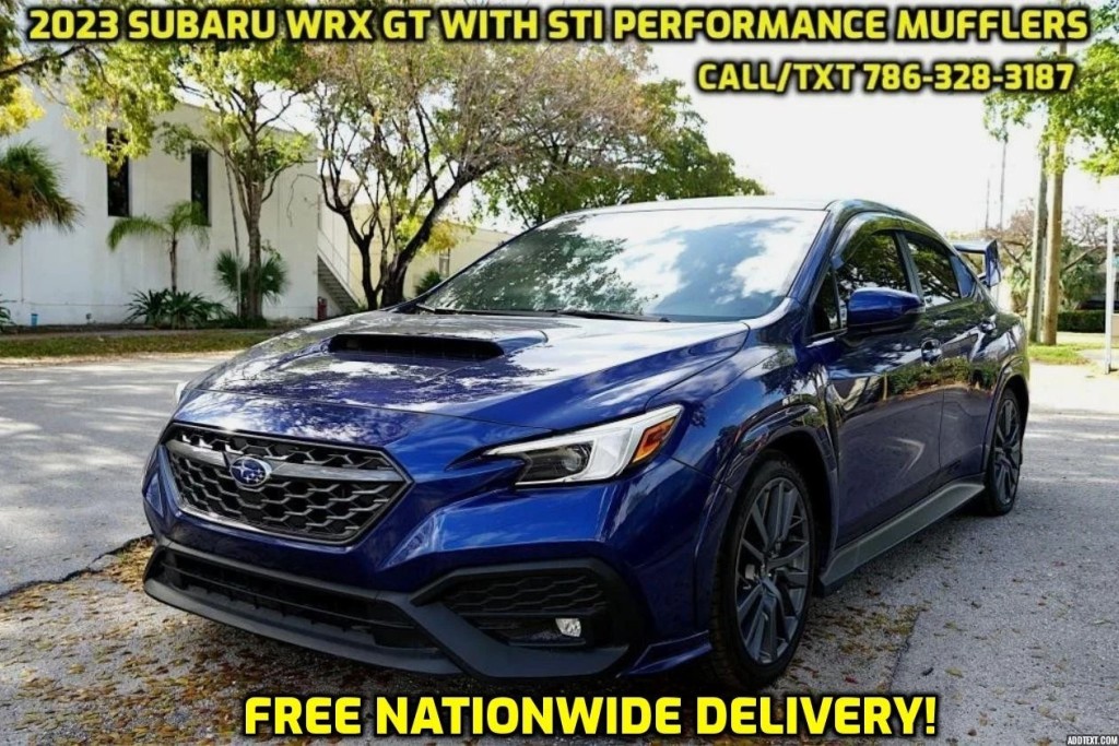 TyAbsolutely stunning top of the line 2023 Subaru WRX GT with STI performance mufflers option. Fully loaded with nearly $50k new sticker price (see window sticker below). This has got to be the nicest WRX GT currently for sale.. along with nearly every factory option, it is also equipped with a big rear wing and carbon fiber exterior elements. Two keys, floor matts, and owners manual (still factory sealed) included. This WRX is in excellent condition inside and out, all service is up to date. Absolutely no issues whatsoever, and 2,000 mile warranty included in the price. I've personally drive this car several hundred miles to make sure are no issues. The car recently passed Florida DMV inspection. It's the best price in the country for a comparable WRX - so don't miss it!