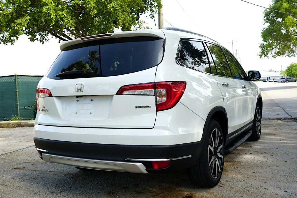 TOnly 22,700 original miles. This is the top of the line fully loaded 2022 Honda Pilot Touring Edition. Just look at this beautiful Platinum White Pearl exterior over beige leather interior color combo. This Pilot is in excellent condition inside and out, no issues whatsoever, and 2,000 mile warranty included in the price. I've personally drive this car several hundred miles to make sure are no issues. The car recently passed Florida DMV inspection. It's the best price in the country for a comparable Pilot by far - so don't miss it!